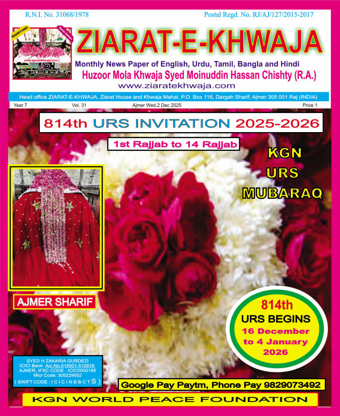 Ajmer 1 January to 14 January 2025 Aashiqu-E-Khwaja Gharib Nawaz (R.A.),