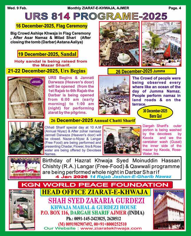 814, Urs Mubarak Ajmer 814, Urs Mubarak 2025 Ajmer 16 December 2025 to 4 January 2026 Again in 2025 DEPEND ON MOON